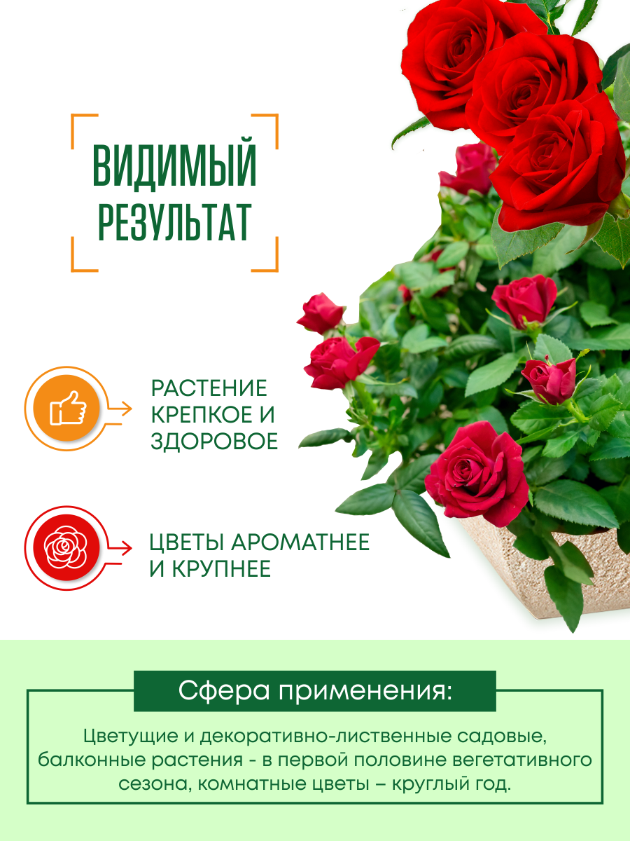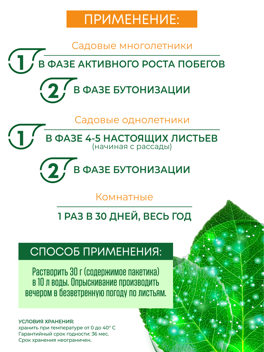 - обеспечивает постепенное эффективное проникновение питательных компонентов в метаболическую систему растения в течение 30 дней