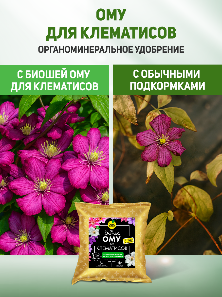 2. Для подготовки клематисов к зиме в сентябре внесите «БИОША ОМУ УНИВЕРСАЛЬНОЕ (ОСЕНЬ)».