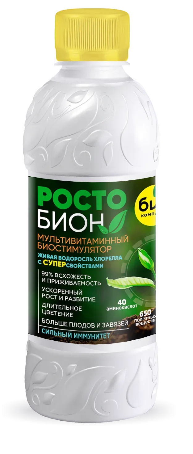 Его уникальность в том, что Ростобион не просто восполняет своими фитогормонами нехватку их у растения, как это делает обычная Суспензия Хлореллы.