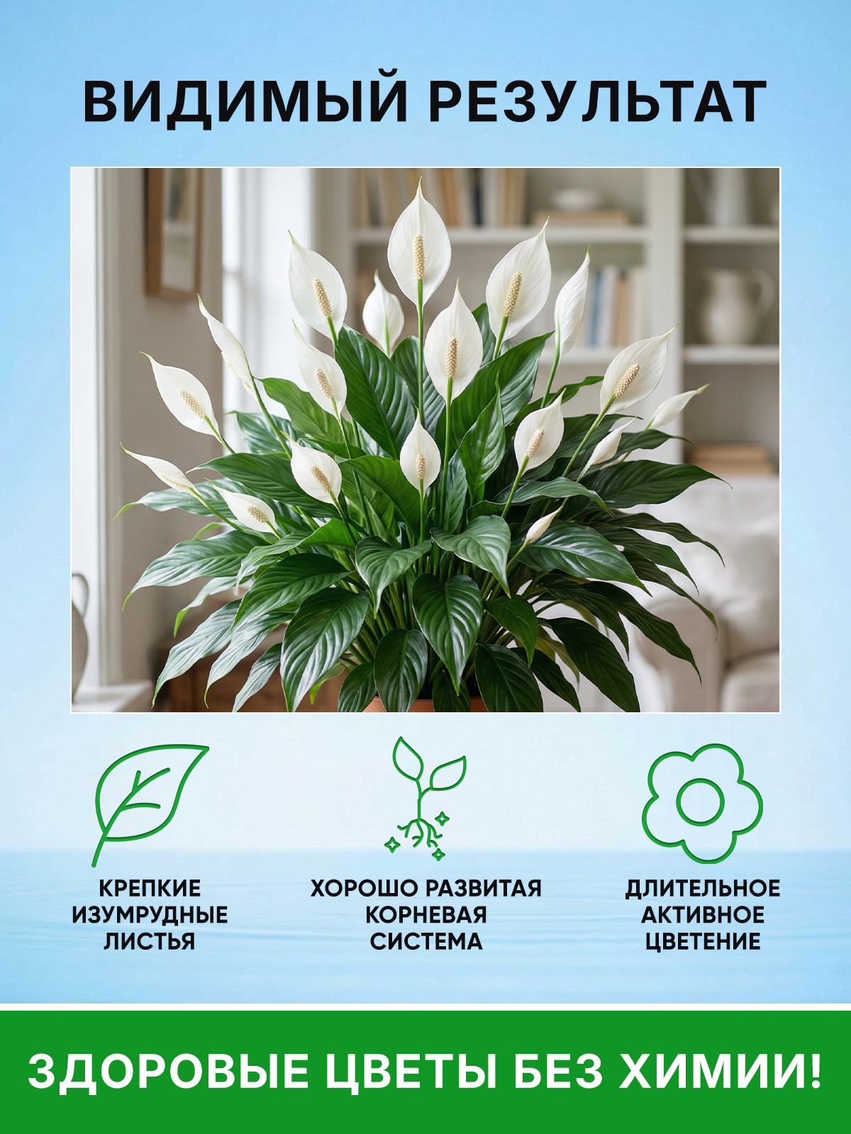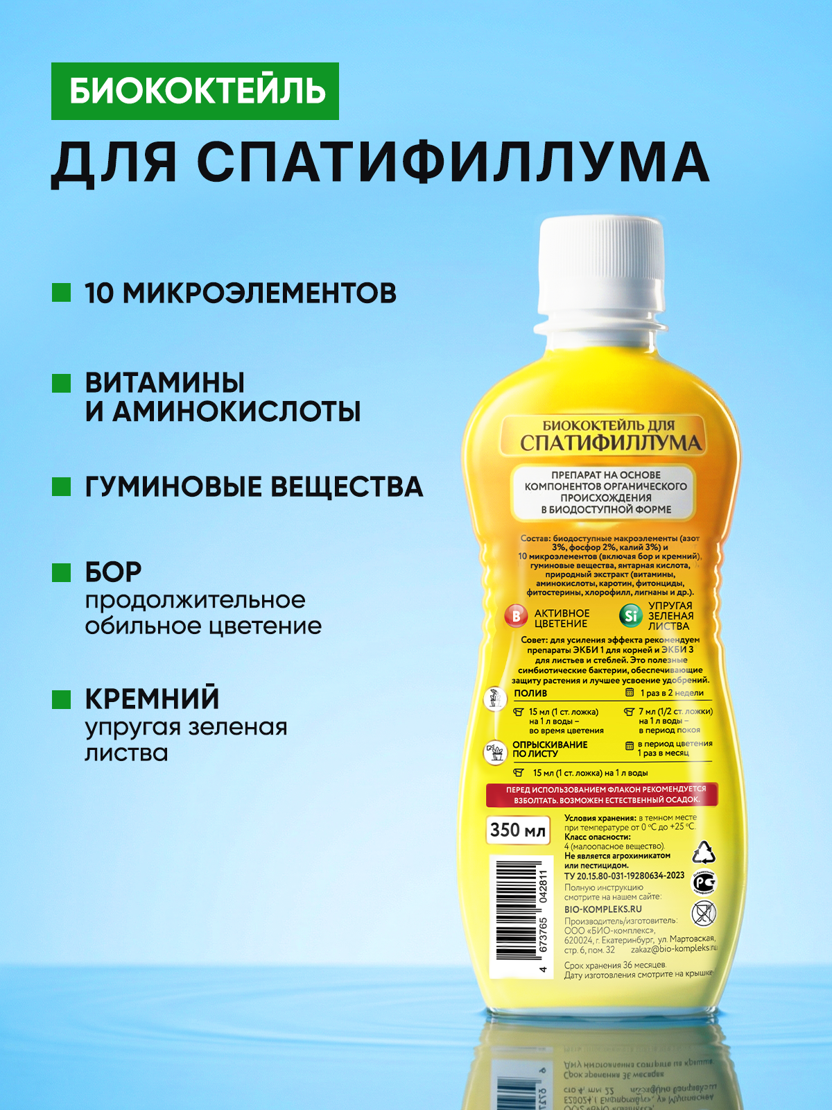 Натуральный состав биококтейля разработан специально для бережного ухода за растением СПАТИФИЛЛУМ.