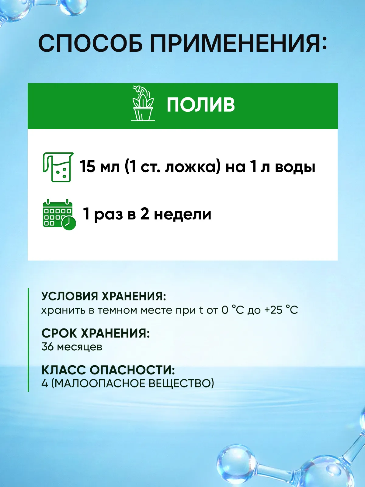 Полив 1 раз в 2 недели: 15 мл (1 ст. ложка) на 1 л воды.