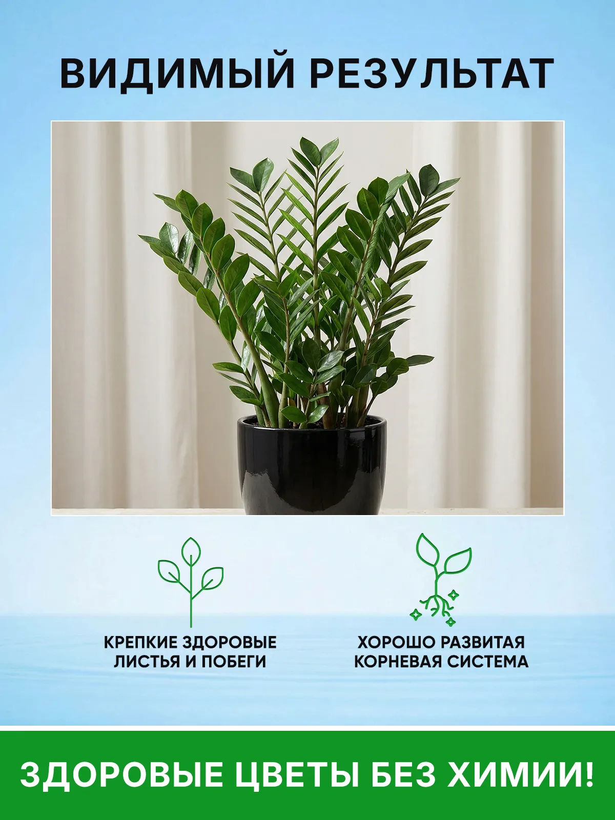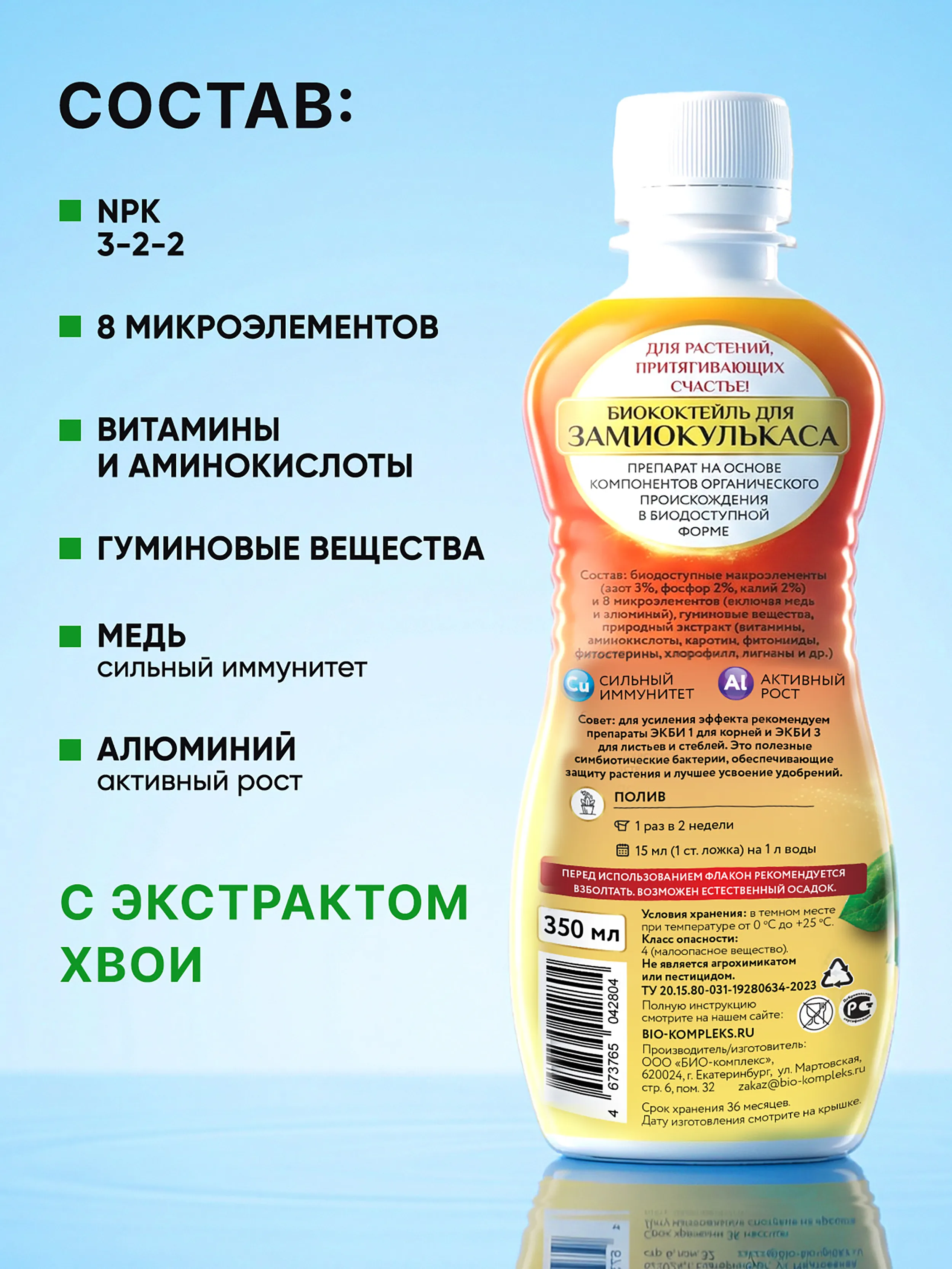 Натуральный состав биококтейля разработан специально для бережного ухода за растением ЗАМИОКУЛЬКАС.
