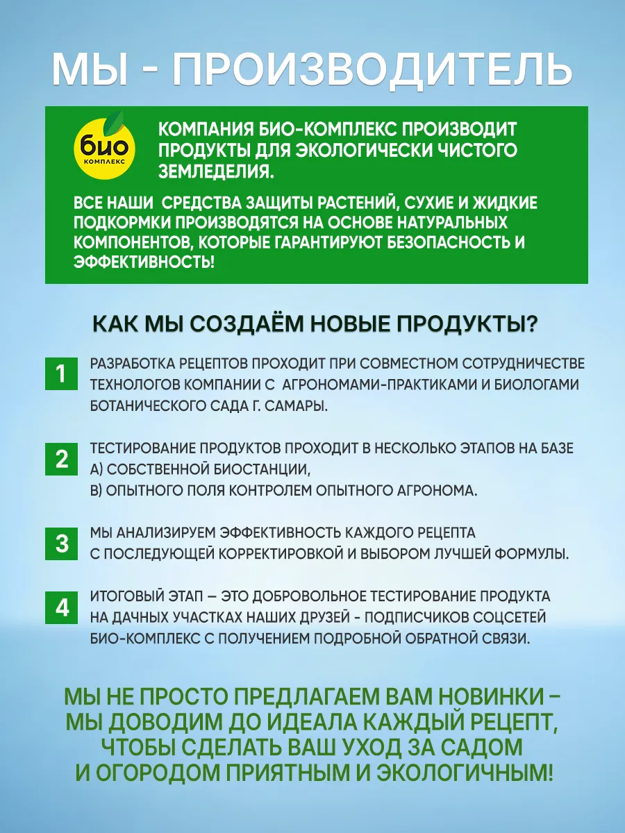 Для усиления эффекта рекомендуем применять препараты ЭКБИ 1 и ЭКБИ 3. Это полезные симбиотические бактерии, живущие на корнях и листьях растения, обеспечивают лучшее усвоение питательных веществ и дополнительную защиту от болезней и вредителей. Они абсолютно безвредны для человека, а для растения являются незаменимым помощником.
