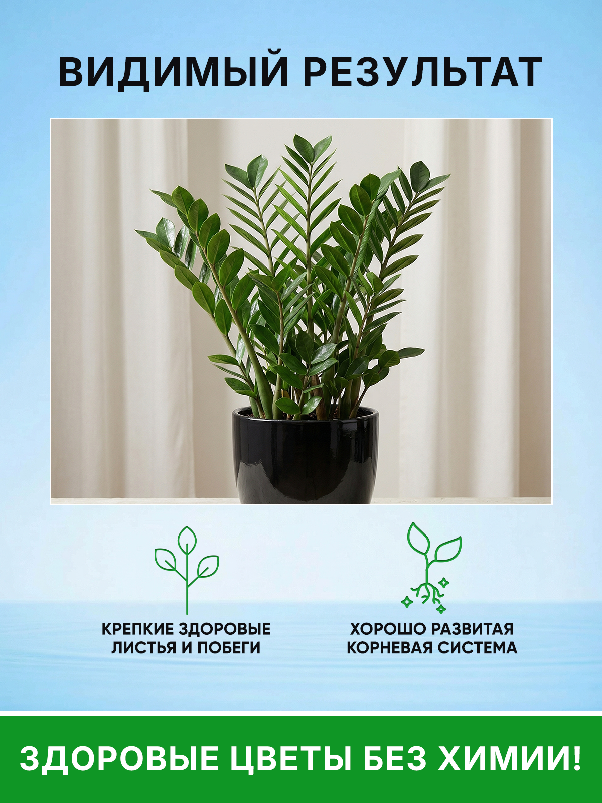 Натуральный состав биококтейля разработан специально для бережного ухода за растением ЗАМИОКУЛЬКАС.